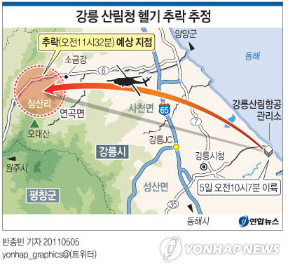 사고 추정 헬기는 이날 오전 10시7분 강릉