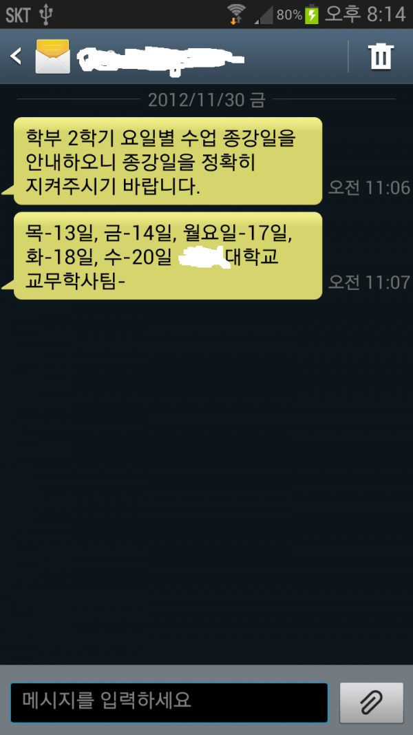 모 대학에서 강사, 교수님들에게 보낸 문자 메세지..
